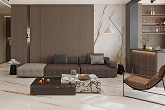 依诺瓷砖新品【威尼斯棕】6面无限连纹 ,750×1500mm黄金比例尺寸,地面铺贴放大空间视觉尺度,墙面应用纵向拉伸空间感,从住宅到商业的全域适配。